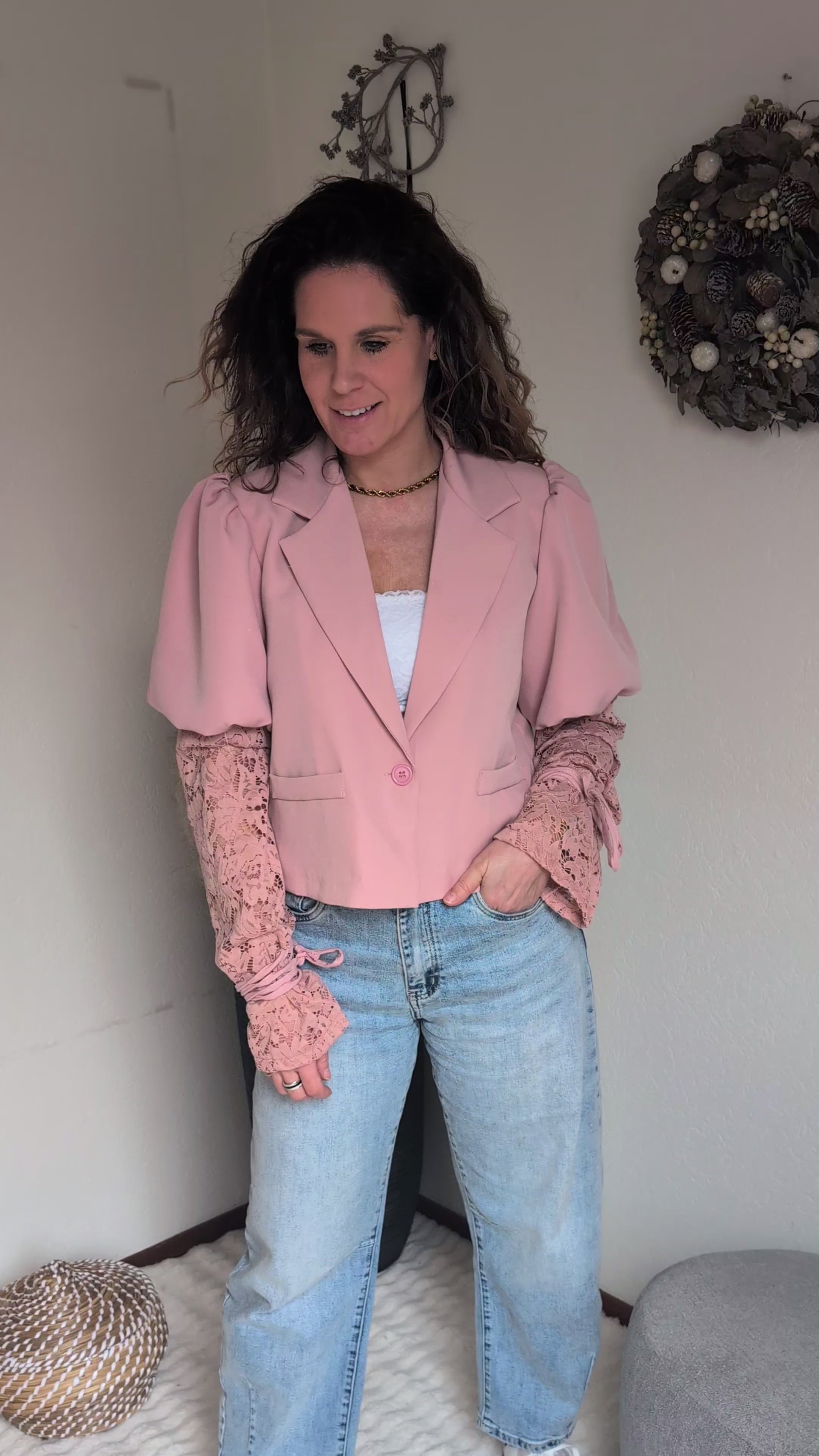 Lisa blazer met pofmouw en kanten mouwen